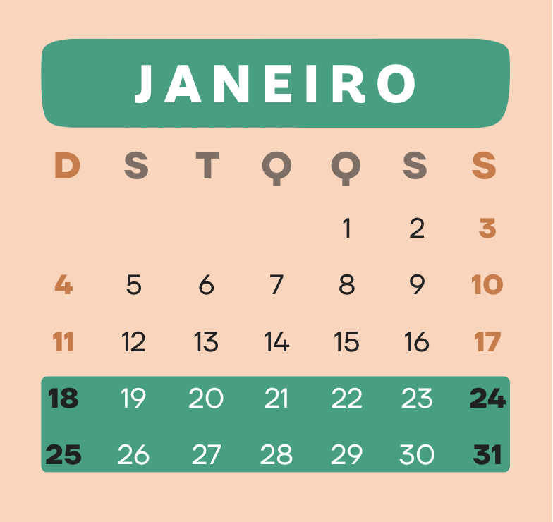 Calendário de 2026 para nossa imersões formativas e de desenvolvimento pessoal